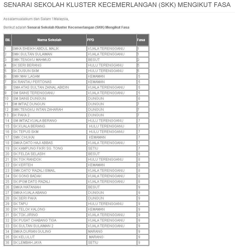 Unit Sekolah Menengah Sektor Pengurusan Sekolah Jpn Terengganu Senarai Skk Dan Sbt Negeri Terengganu