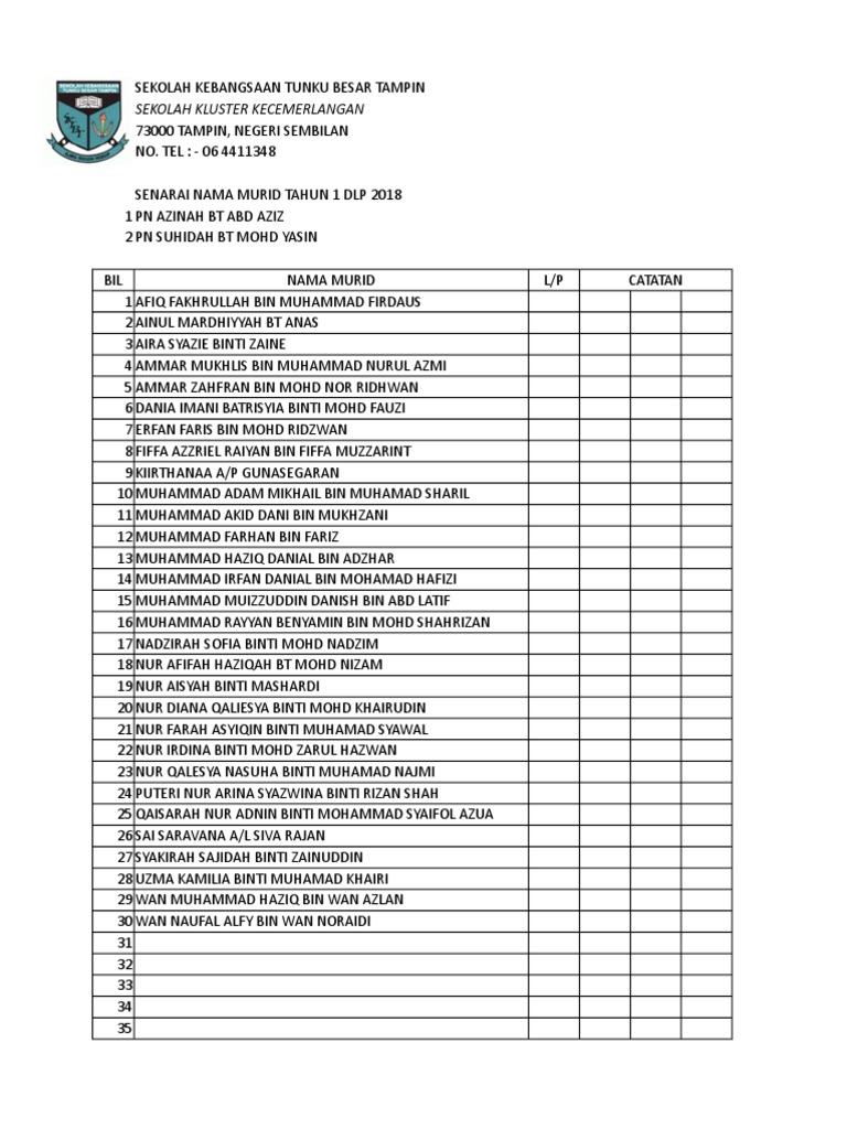 Senarai Nama Murid 2018 3