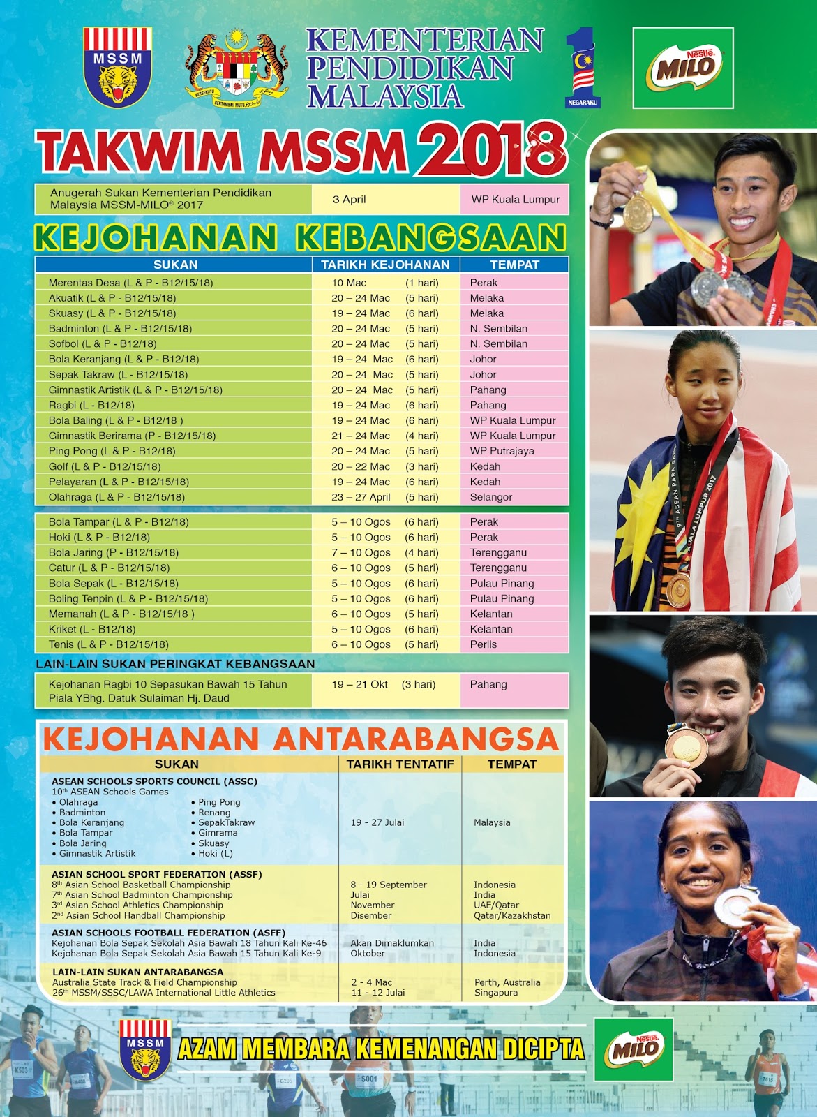 Takwim Majlis Sukan Sekolah Malaysia Mssm 2018 Terkini Pendidikanmalaysia Com