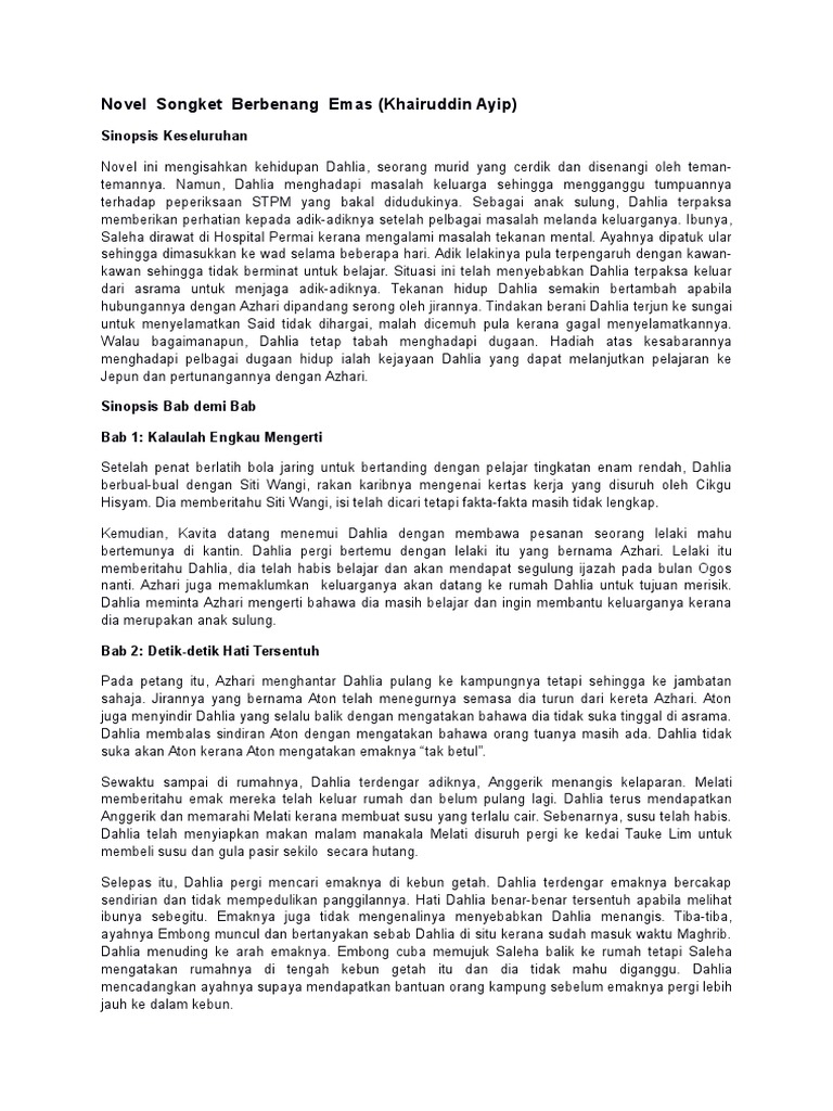 Novel Songket Berbenang Emas Docx Novel Songket Berbenang Emas Khairuddin Ayip Sinopsis Bab Demi Bab Bab Sinopsis Dahlia Dan Rakan Rakannya Siti Wangi Course Hero