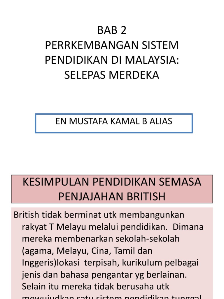 Perkembangan Sistem Pendidikan Sebelum Dan Selepas Kemerdekaan Perkembangan Sistem Pendidikan Sebelum Dan Selepas Kemerdekaan