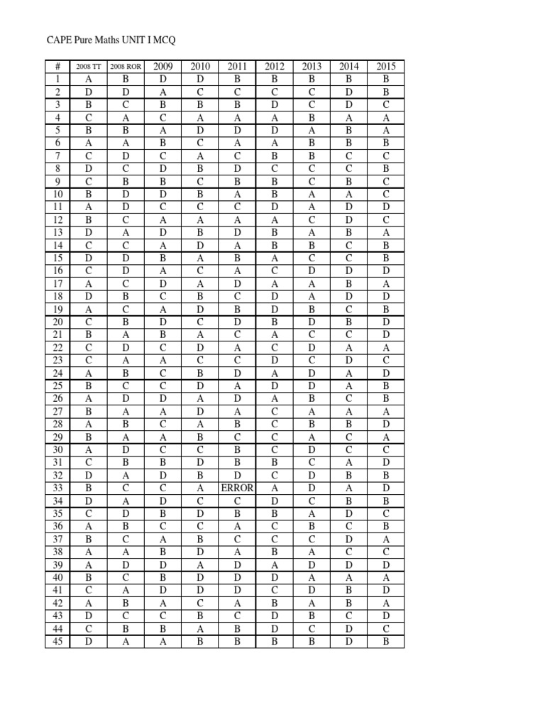 Unit 1 Pure Mathematics Mcq 2008 2015 Answers Pdf Physics Mathematics Mathematics