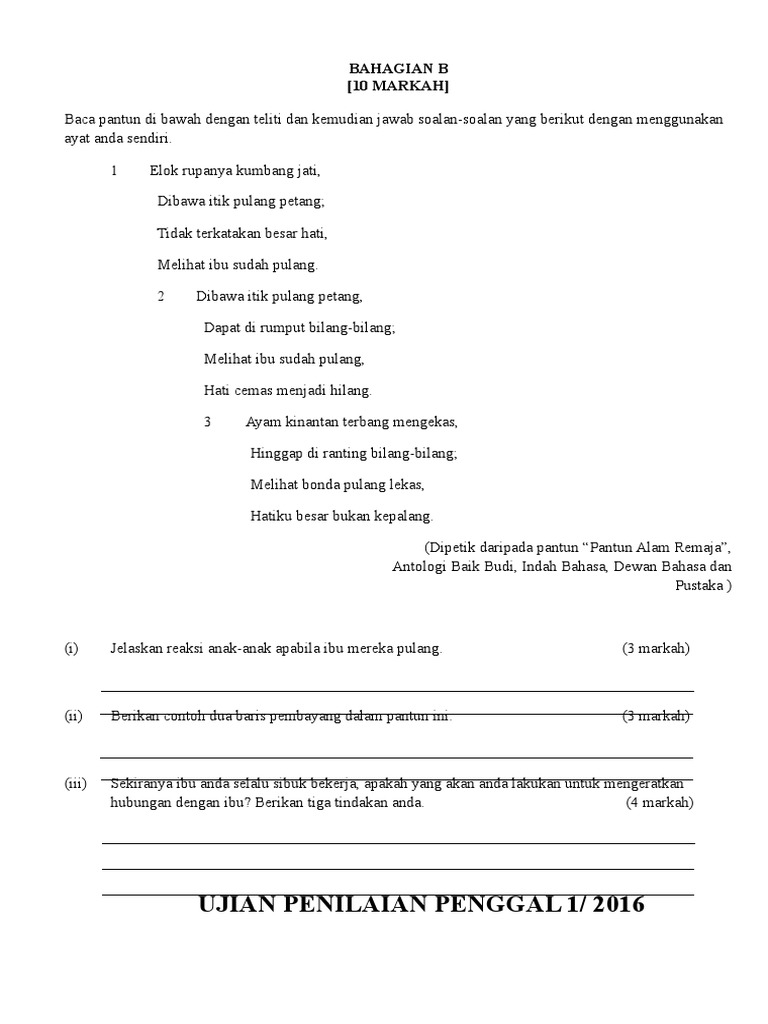 Soalan Dan Jawapan Pantun Alam Remaja Kecemasan P
