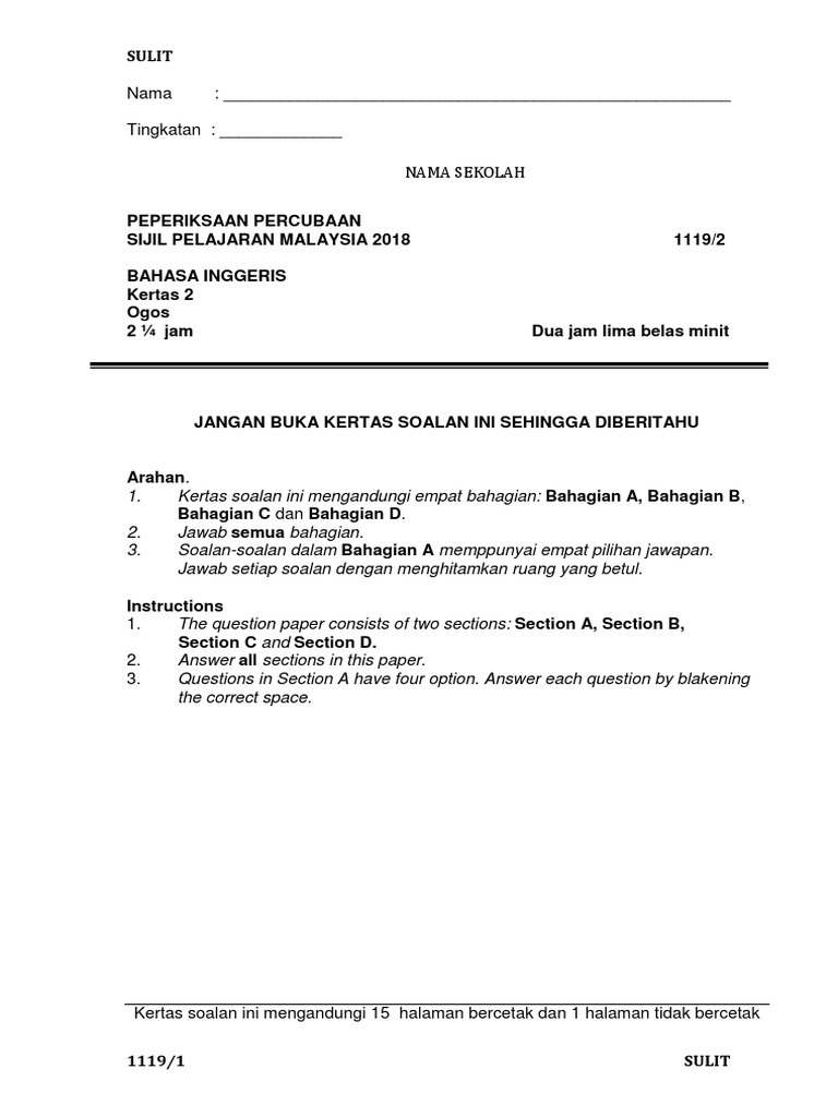 Sample Question Of Paper 1 English Spm