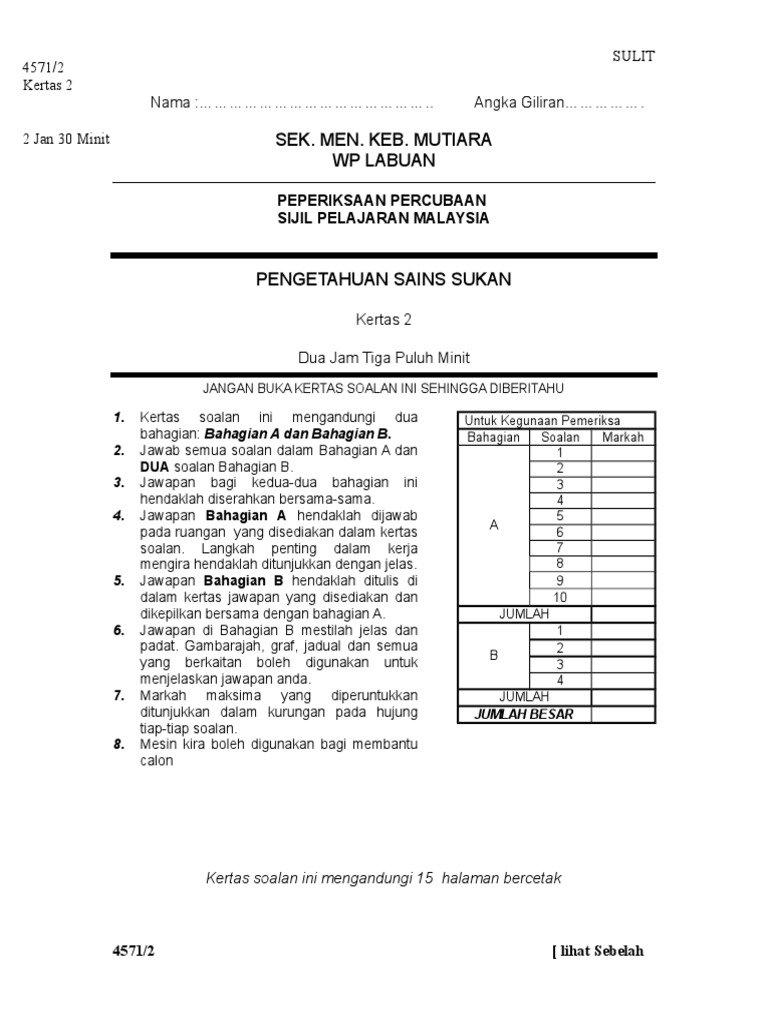 Koleksi Soalan Percubaan Spm Sains Sukan 2018 E Perkhidmatan
