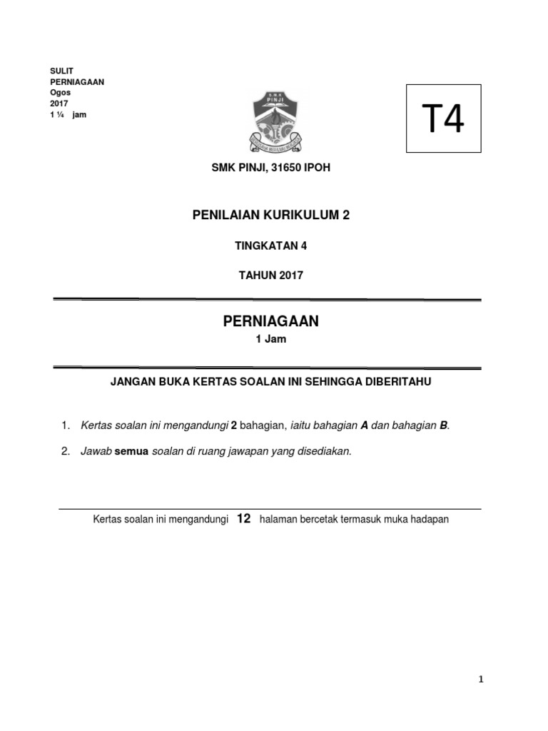 Soalan Perniagaan Tingkatan 4 Tersoal M