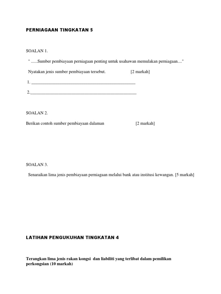 Contoh Soalan Struktur Perniagaan Tingkatan 4 W Soalan