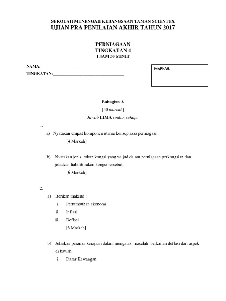 Bank Soalan Peperiksaan Akhir Tahun Perniagaan Tingkatan 4 Gurubesar My