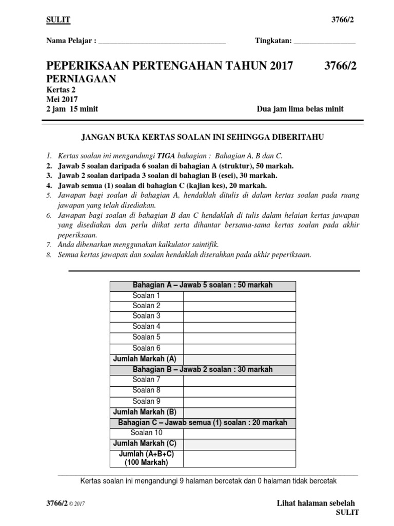 Format Baharu Soalan Spm Bagi Perniagaan Mulai Tahun 2018 Bumi Gemilang