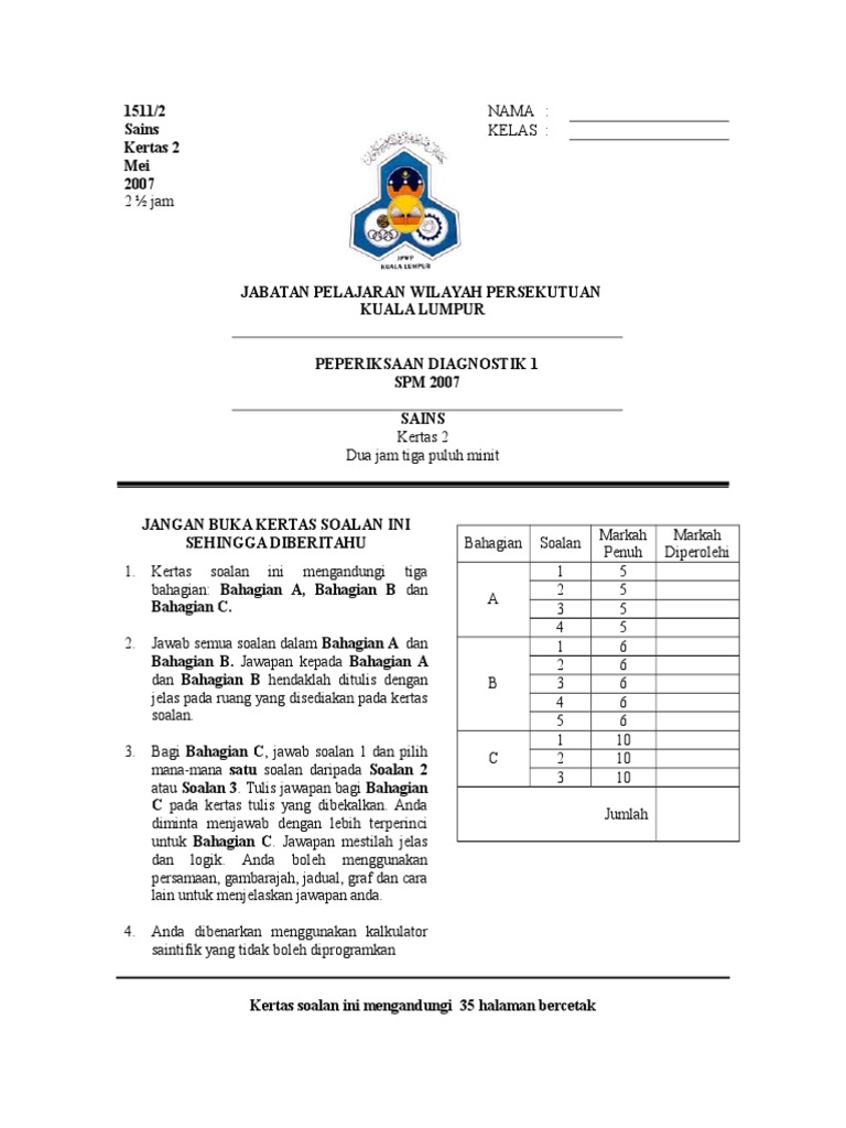 Sains Spm Kertas 2 2007 Diag