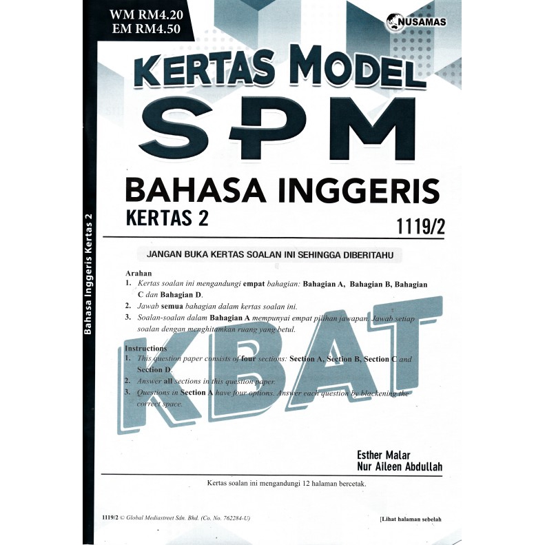 Bahasa Inggeris Kertas 2 Spm Kertas Model 2020 Shopee Malaysia