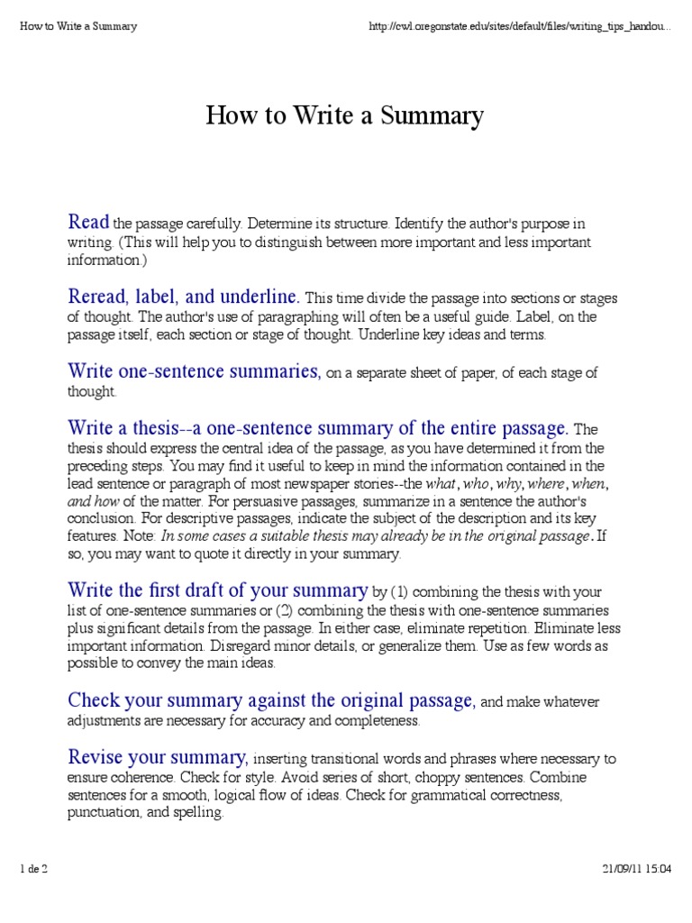 01 How To Write A Summary Sentence Linguistics Thesis