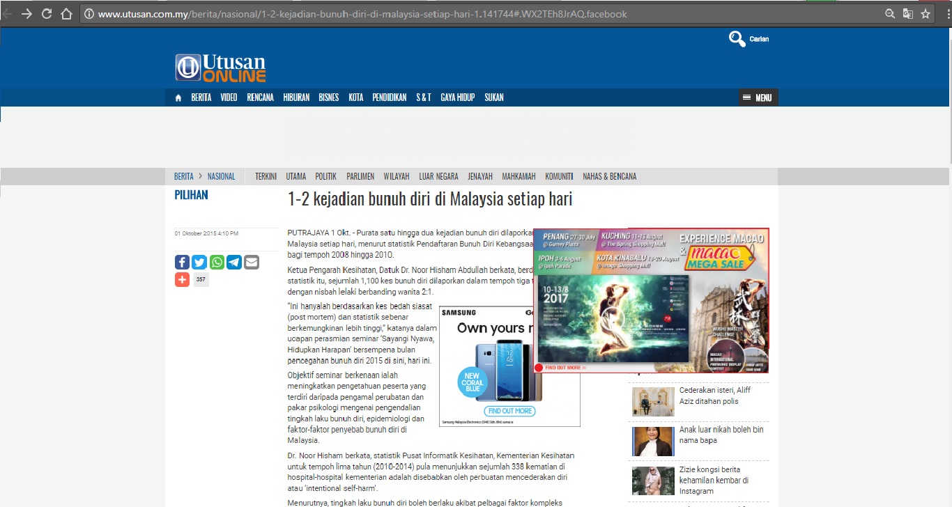 Bunuh Diri Adalah Antara Penyebab Kementerian Kesihatan Malaysia Facebook
