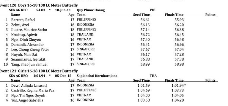 Ikan Bilis Swimming Club 1971 Kl Session 2 Results 41st Sea Age Group Swimming Championship 2017