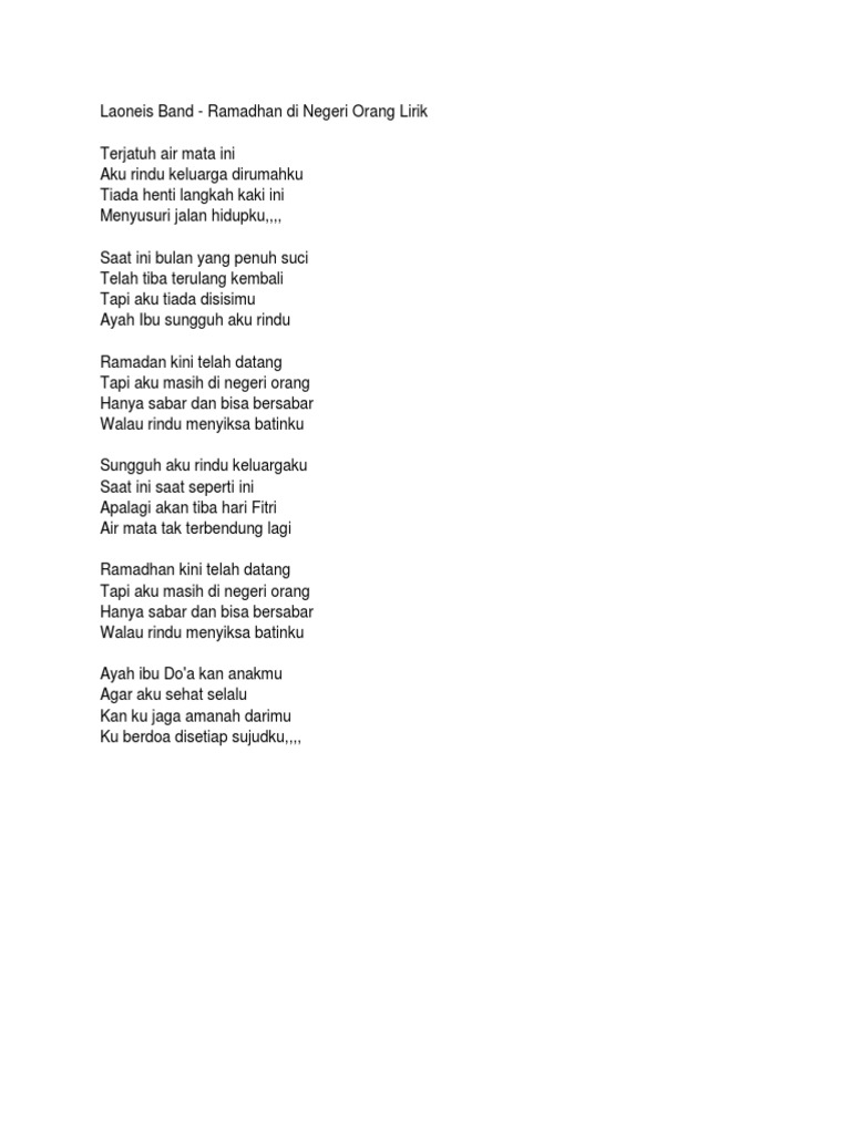 Laoneis Band Ramadhan Di Negeri Orang Lirik Docx