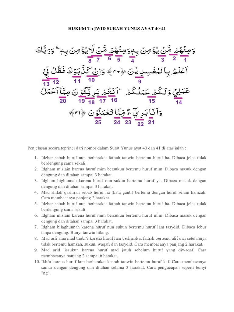 Hukum Tajwid Surah Yunus Ayat 40 41
