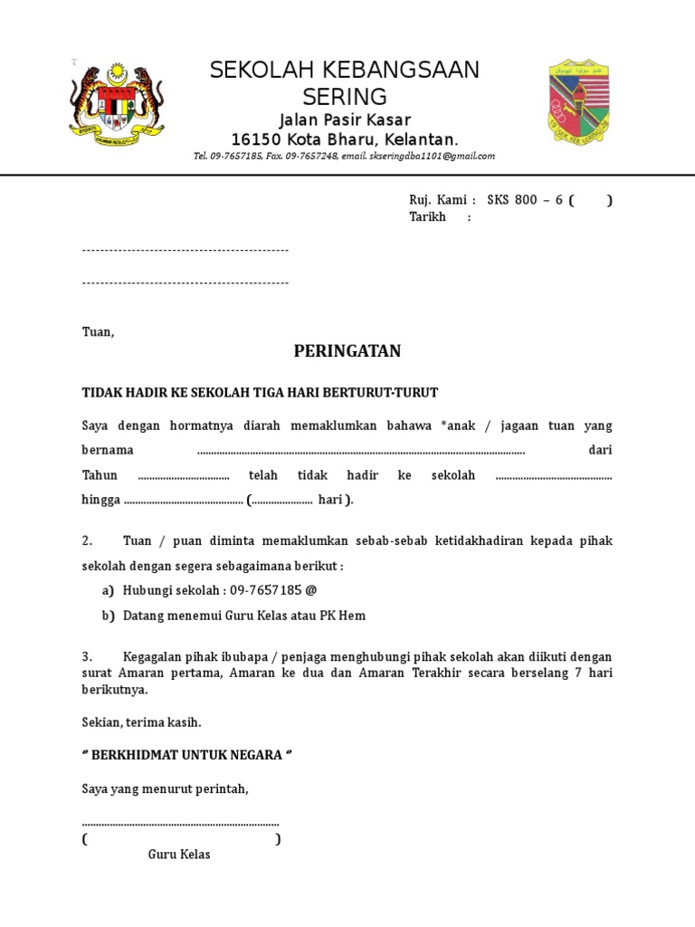 Surat Amaran Tidak Hadir Ke Sekolah Doc