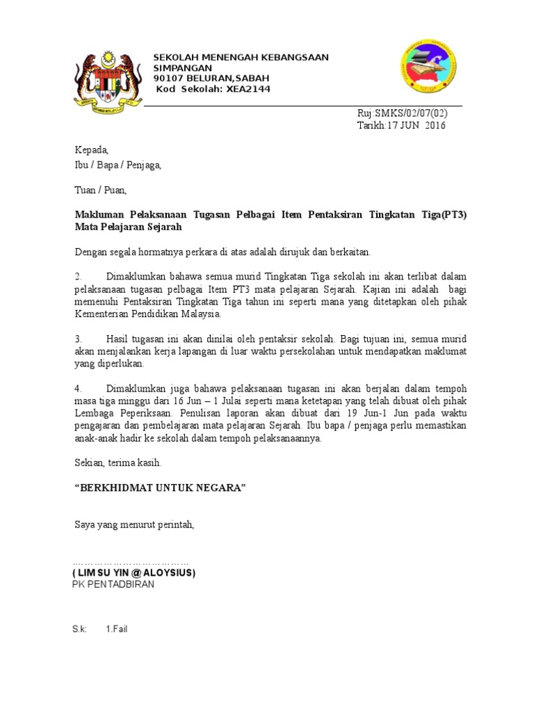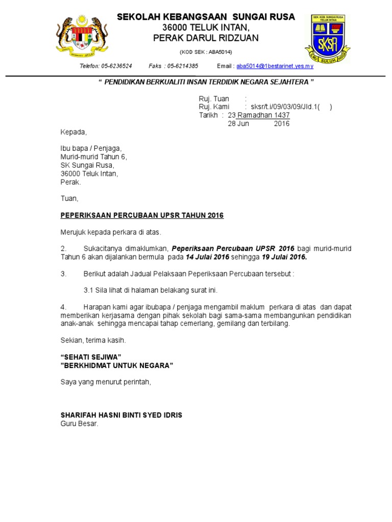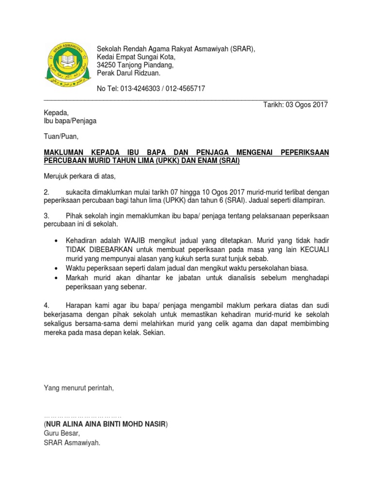 Surat Makluman Kepada Ibu Bapa 2017 Doc