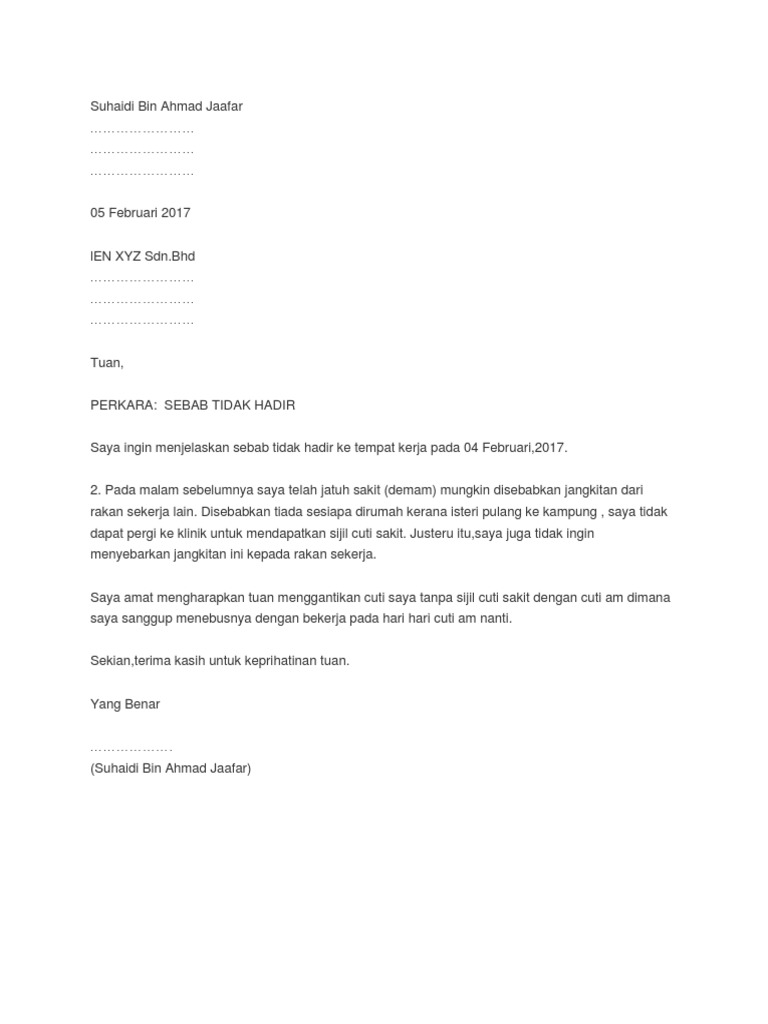 Surat Rasmi Cuti Sakit Tidak Hadir Kerja Resepi Book H