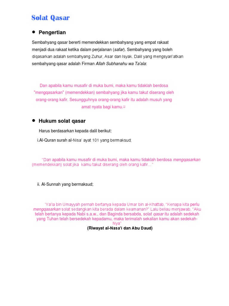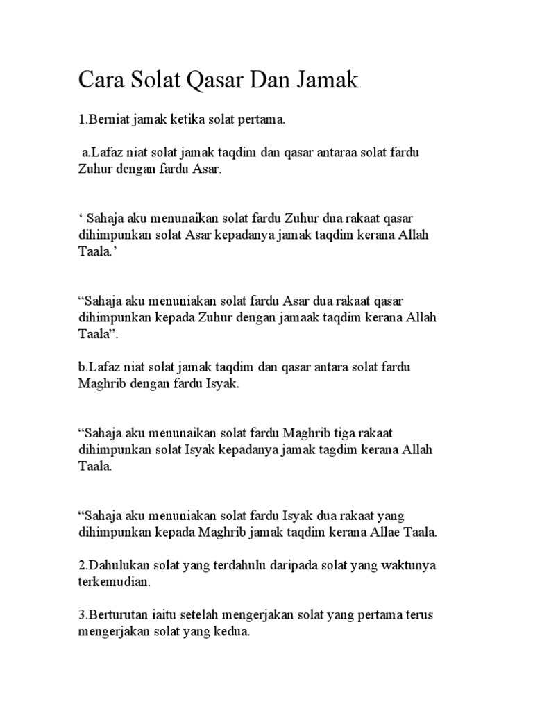 Solat Jamak I Jamak Takhir Niat Bagi Solat Qasar Adalah Seperti Berikut Solat Zohor Sahaja Aku Solat Fardhu Zohor Dua Rakaat Qasar Kerana Allah Taala Hal Pdf Document