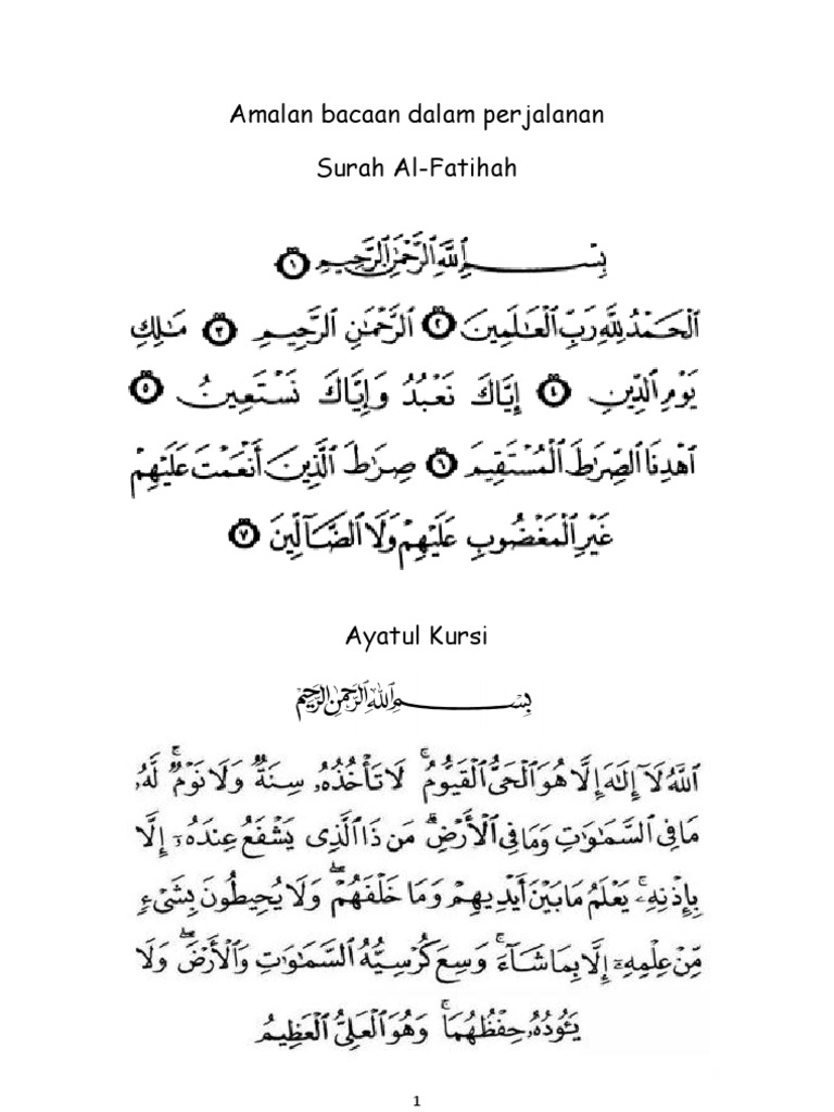 Amalan Bacaan Dalam Perjalanan Surah Al Fatihah