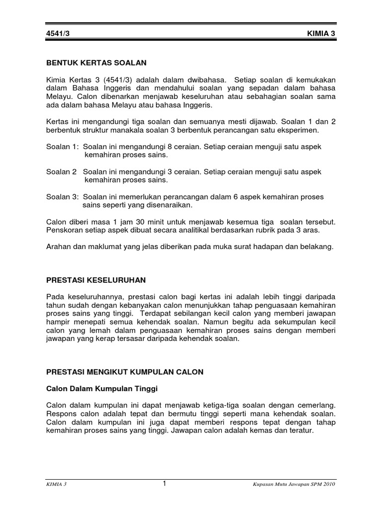 Chemistry K3 Spm 2010 Kupasan Mutu Jawapan Calon
