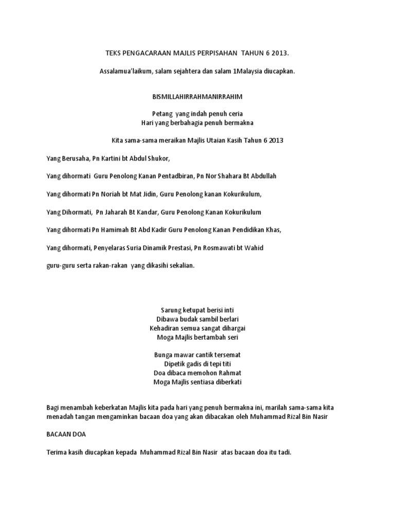 Teks Doa Majlis Persaraan Guru Docx