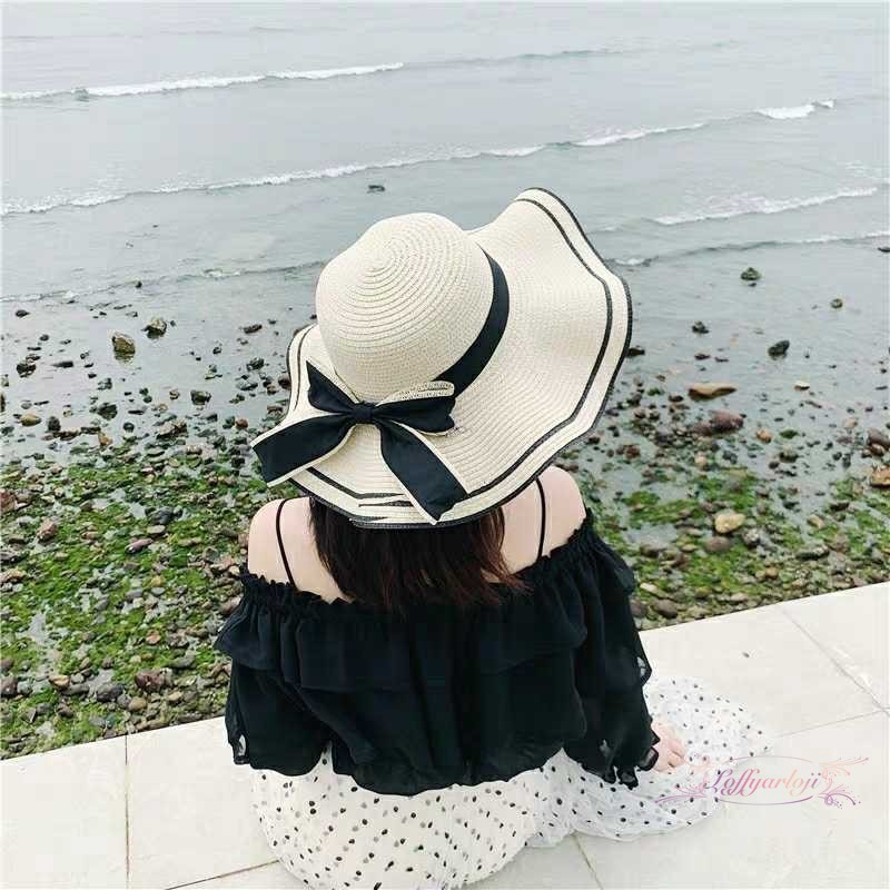 Ada Stock Tepi Berombak Busur Topi Jerami Wanita Tepi Pantai Teduh Topi Besar Shopee Indonesia