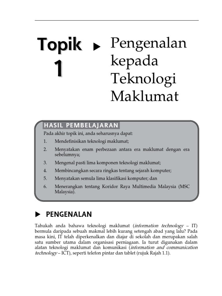 Topik 1 Pengenalan Kepada Teknologi Maklumat