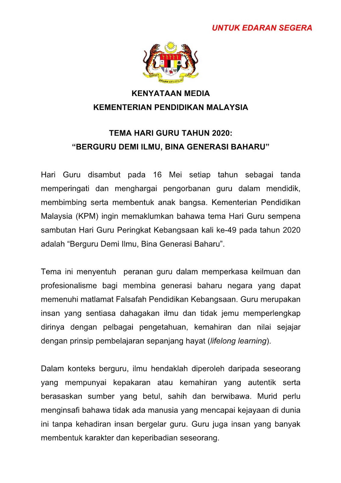 Kenyataan Media Rasmi Kementerian Kementerian Pendidikan Malaysia Facebook
