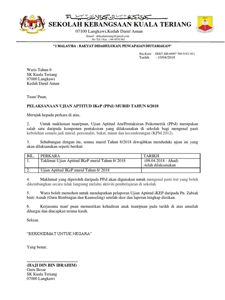 Pemberitahuan Pelaksanaan Ujian Aptitud Am Psikometrik Pbs Murid Tahun 3 Sekolah Kebangsaan Bandar Bukit Mahkota