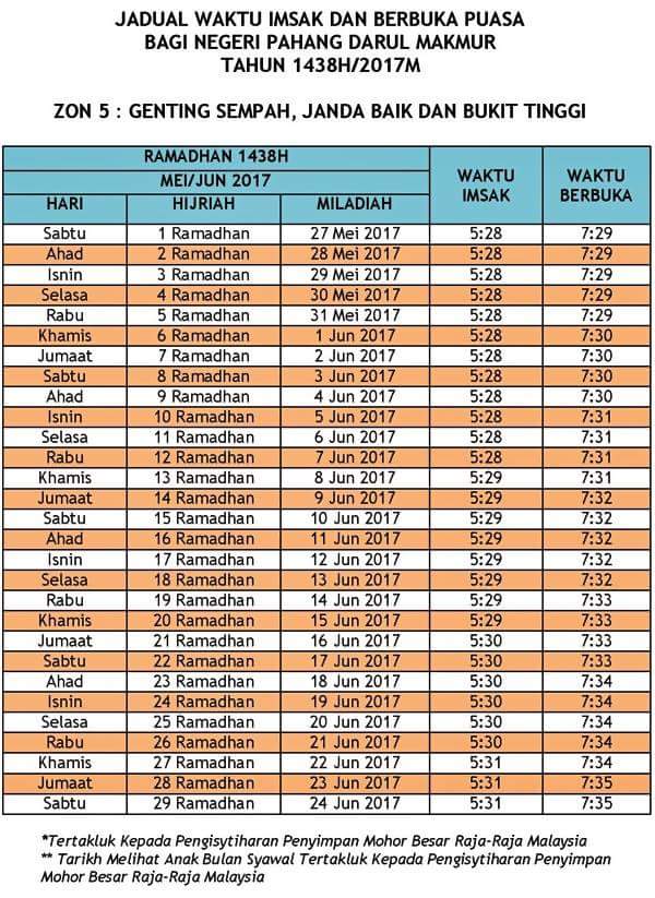 Waktu Berbuka Puasa Dan Imsak Negeri Pahang 2017 Pengedar Shaklee Kuala Lipis
