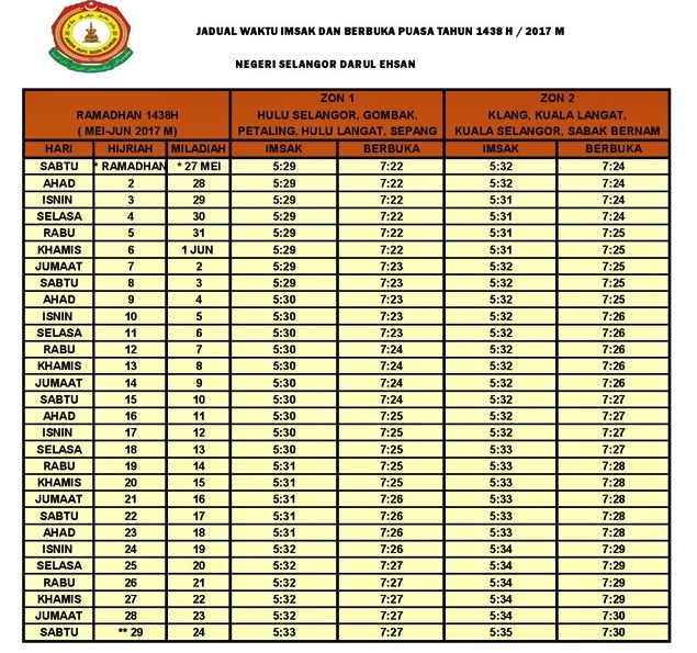 Waktu Berbuka Puasa Dan Imsak Negeri Selangor 2017 Pengedar Shaklee Kuala Lipis